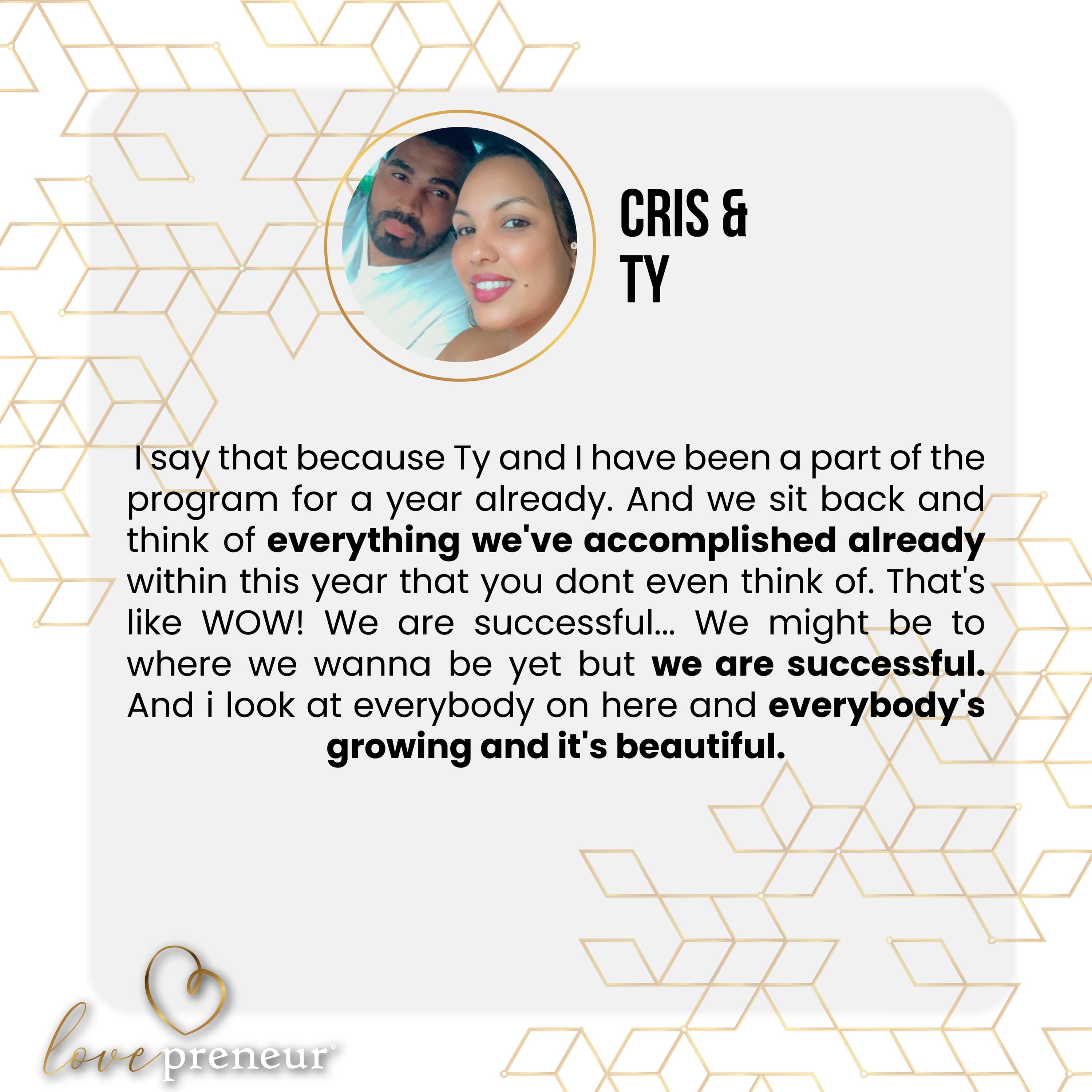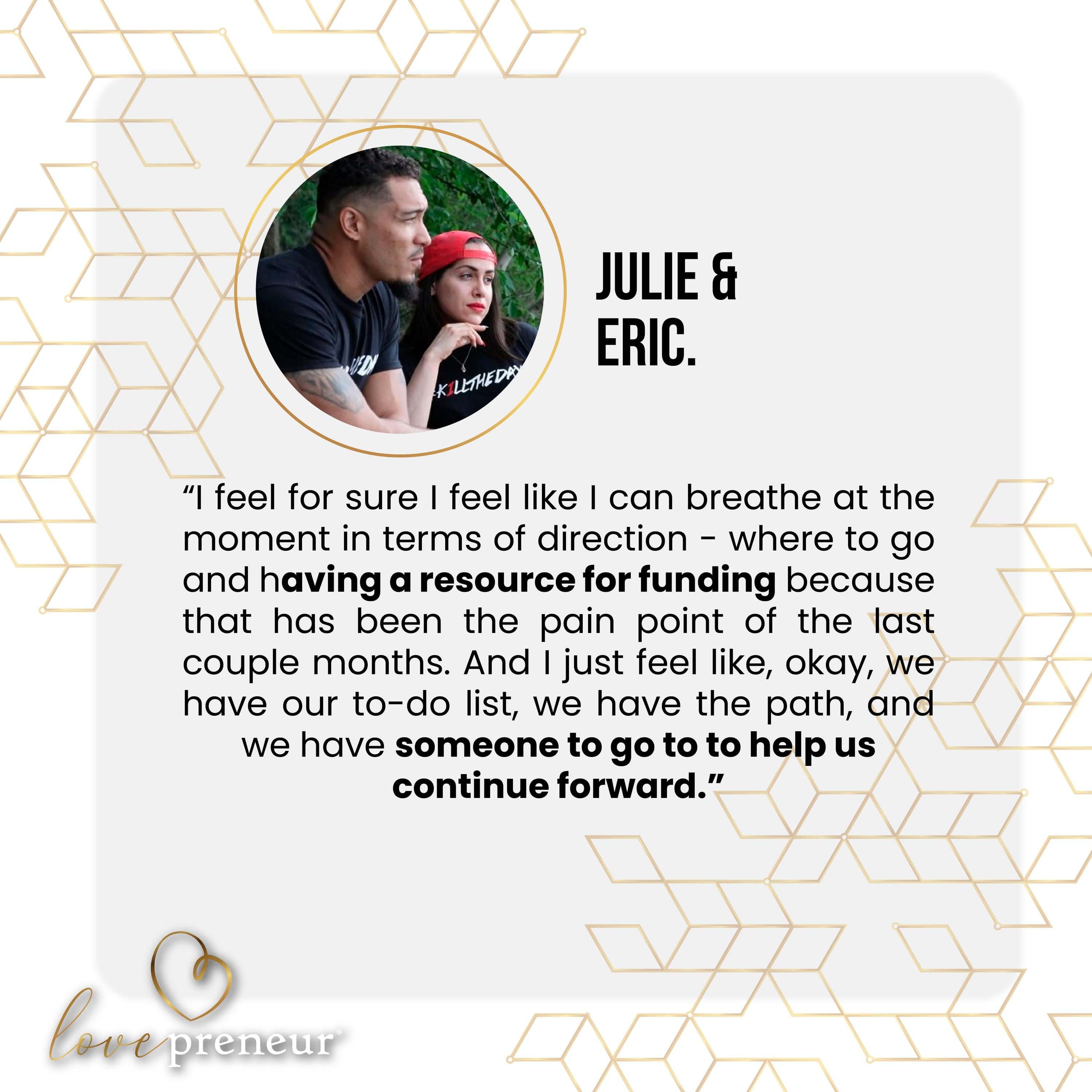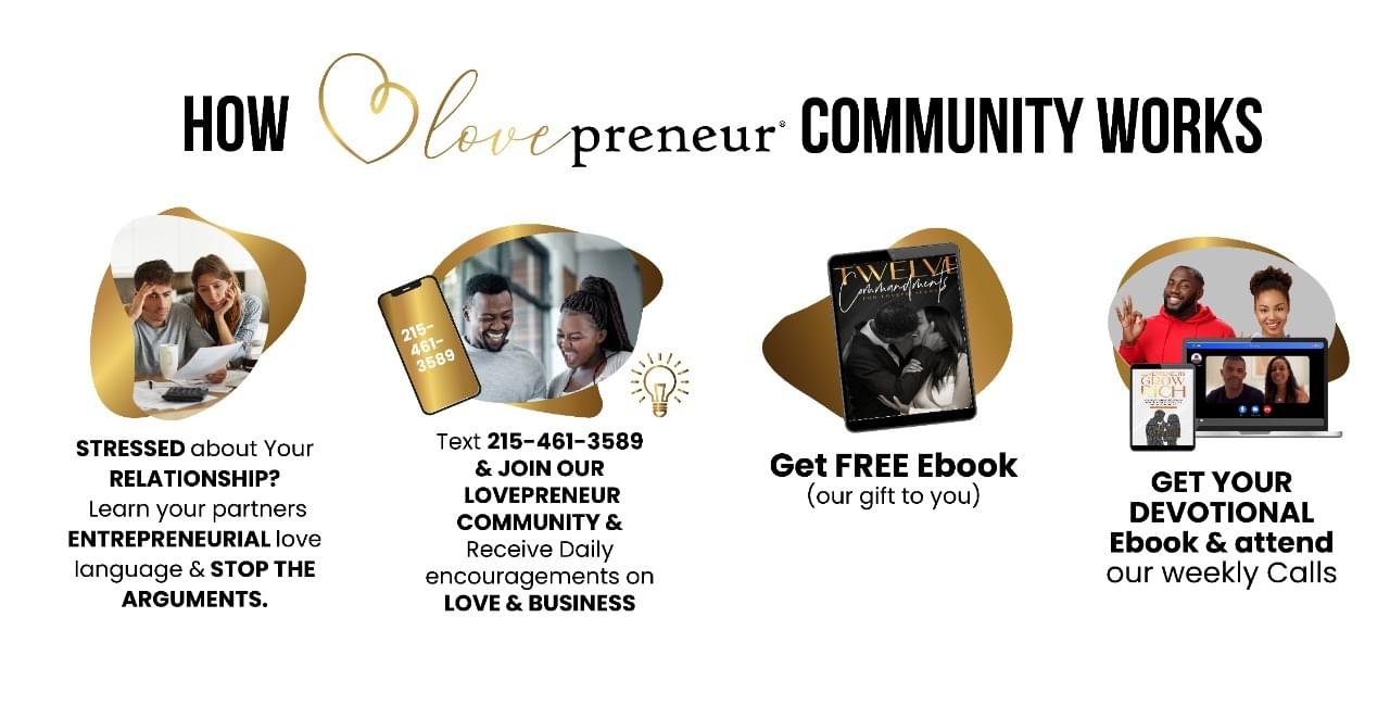 Having love and trust at the forefront of your plans can only lead to success. That is why we encourage you to not only work on your business but also to work on your relationship throughout your entire journey as you become a successful Lovepreneur couple.